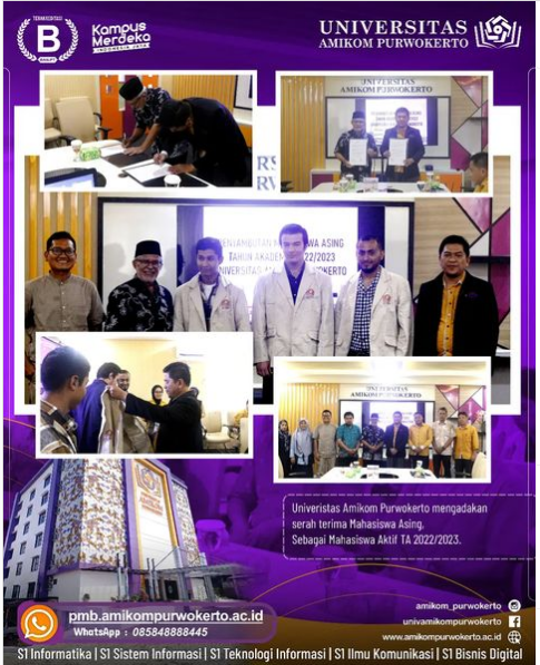 Menjelang akhir Tahun 2022, Universitas Amikom Purwokerto, semakin menunjukkan komitmennya sebagai PTS penyelenggara Pendidikan Berbasis Technopreneur. Hari ini (Selasa, 15/11) telah diselenggarakan Serah Terima Mahasiswa
