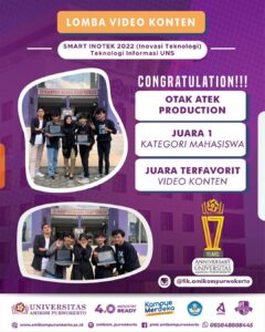 [ad_1] SELAMAT !!! Alhamdulillah Video Konten Tim Otak Atek Production karya Mahasiswa Universitas Amikom Purwokerto yaitu: Arief Feisal Basri – Prodi Informatika Agum Hasrudin –