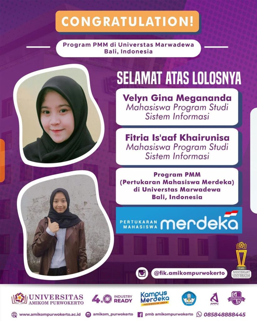 atas lolosnya dalam Program Pertukaran Mahasiswa Merdeka (PMM) di Universtas Marwadewa, Bali, Indonesia.
