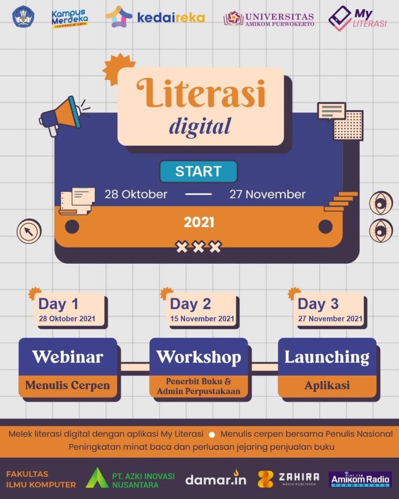 Pelaksanaan Matching Fund dari Program Kedai Reka antara Fakultas Ilmu Komputer dan PT. AZKI Inovasi Nusantara sebagai mitra perusahaan, menghadirkan Kegiatan Webinar dan Workshop yang diakhiri dengan Launching Aplikasi MyLiterasi.